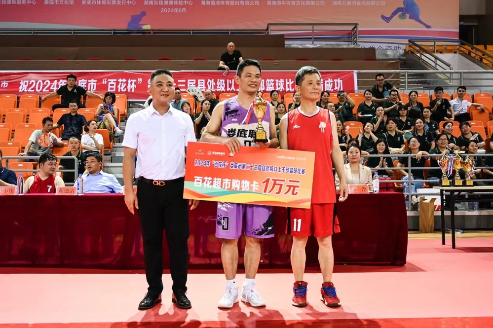 7月10晚,娄底市第23届县处级以上干部篮球赛在市体育中心篮球馆落下帷幕,娄底职业技术学院代表队荣获季军。市人大常委会党组书记、主任戴德清,市委常委、市纪委书记、市监委主任唐浩然,市委常委、市委宣传部部长莫小佳,市篮球协会主席肖有胜,市人大常委会副主任李文洪、朱桂良,副市长杨维等出席并为获奖队伍颁奖。