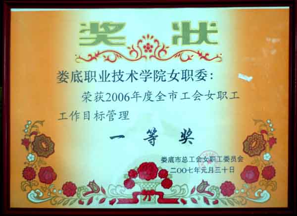 由于我院女职委认真履行职责,工作扎实,针对性强,成绩突出,2007年被市总工会评为了全市工会女职工工作目标管理一等奖;公共事务管理系副主任雷晚蓉被评为全市巾帼建功标兵;财经贸易系教师谢丽安被评为全市芙蓉百岗标兵,为学院争得了荣誉。
