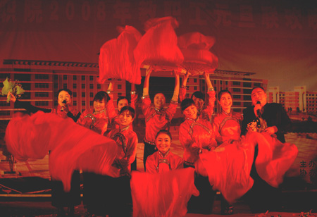 整场晚会高潮迭起,掌声不断。晚会的举行进一步推动和活跃了我院广大教职工的文化娱乐生活,展示了我院全体教职工在学院党委、行政的领导下,团结一致、奋发向上,以主人翁的精神风貌为学院争创省级示范性高职院校不懈努力的豪迈情怀。
