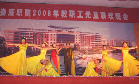 霓虹与鲜花簇拥着舞台,笑声与歌声汇聚成海洋。12月27日还是岁末隆冬,院礼堂却洋溢着一派春的气息,处处欢歌笑语、花团锦簇,我院教职工庆祝2008年元旦联欢晚会在这里隆重举行,学院全体院领导与各处室系部负责人、教职员工济济一堂,载歌载舞共同送别2007年,用自己豪迈的歌声、欢快的舞蹈,迎接新一年的到来,表达对2008年的美好憧憬。鲜花、彩球烘托出节日的气氛,热烈、欢快的乐曲响彻了整个会场。