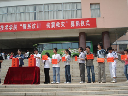 5月12日四川汶川大地震发生后,我院上下迅速作出反应,各系部都组织召开了四川籍学生的座谈会,调查了解学生受灾情况。5月16日下午,我院全体教职员工慷慨解囊,为灾区人民奉献出爱心,共计捐款86960元。
