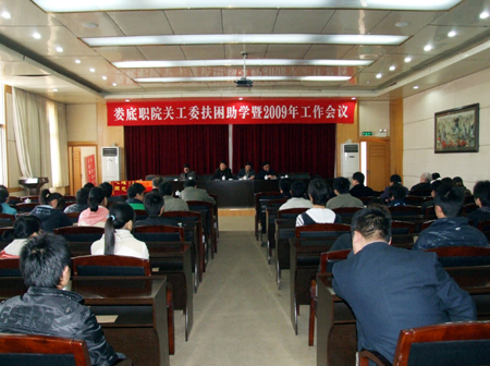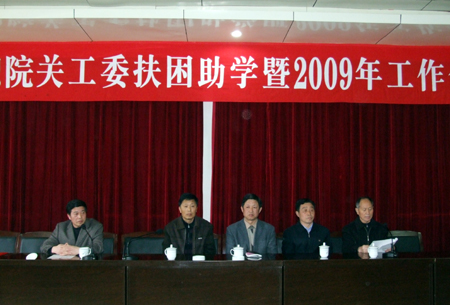 3月30日下午,我院关心下一代工作委员会扶困助学暨2009年工作会议在多功能报告厅召开,院党委书记陈立楚、党委副书记欧友佳、党委委员、工会主席、关工委主任刘自斌、关工委常务副主任朱建国、学院组织人事处、宣传统战部、工会、学工处、团委负责人、学生资助中心主任、各系部学工主任、关工委徐光华、贺汉雄、陆运夫、林莆田、黎忠杰及43名受资助学生参加了会议。会议由刘自斌主持。