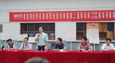 下午四点,在图书馆前的操场上举行了学院第二届“移动杯”教工男篮、女排赛开幕仪式。院领导在主席台就坐,党政、党群分工会、教务分工会、机电分会、电信系分工会等分工会分别组队参加本次比赛。开幕式由党委副书记欧友佳主持。院长杜祥培发表讲话,希望大家在比赛中发挥拼搏精神和比赛第一、友谊第二的精神,在接下来的几天里赛出好的成绩。裁判和运动员代表分别宣誓,党委书记陈立楚宣布本届比赛正式开幕。