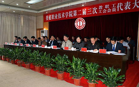 大会还听取了我院工会主席曾国基所作的《充分发挥工会职能 加强民主管理监督 为构建和谐校园作出更大贡献》的工会工作报告。同时,提交大会审议讨论的文件有《娄底职院2009年财务收支情况及2010年财务预算方案编制的说明》、《娄底职院2009年度工会经费审查报告》、《娄底职院第二届三次教代会提案工作报告》、《<教职工福利暂行规定>修改草案》及《关于开展教职工身体素质达标测试的实施意见(讨论稿)》。“两会”还对五件优秀提案进行了表彰,其中一等奖提案为向右铭代表的《建立长效机制 在源头上防止和杜绝“小金库”》。