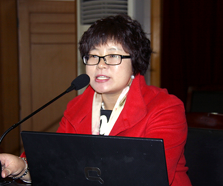 李文莲十分高兴地向全体女教职员工表达了节日的问候,并对康海燕的讲座给予了极高评价,认为讲座不仅有理论研究,而且有广泛的事实材料支撑,最重要的是以我们女性身边的事例娓娓道来,让人亲切且易于理解和接受。李文莲还用“三像”阐述了自己对女性的理解。她表示,女人像花,美丽灿烂,是一切美好的象征,“如果把家庭比作一个圆,那么女人就是圆心,其他人则是圆的周边,女人就是生机、是凝聚力。”女人像草,虽然在各行各业有着非常多杰出的女性代表,但就整个社会环境而言,女性多少还是承受着一些不公平待遇。女人像树,树的成长必须将根扎得又深又广,又要积极向上,向着阳光、向着广大的空间汲取养分,女人也应如此,不仅要有形象上的成长与修炼,更要有心态、知识上的日积月累。“女性不仅是美丽灿烂的鲜花,在有些方面也可能是一株小草,但我们一定要坚持成为一棵伟岸挺拔的大树!女人可以成才、可以独立!”