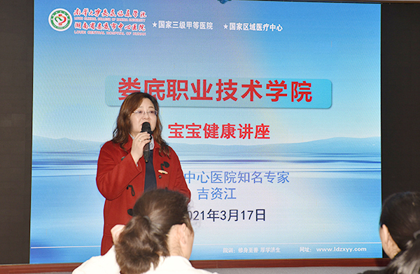 宝宝发烧分哪几种情况?哪些情况不用看医生?怎么量体温?怎么预防和处理宝宝常见病?3月17日下午,院工会邀请娄底市中心医院知名专家、儿科主任医师吉资江在综合楼二楼会议室举办了宝宝健康专题讲座,给娄职的宝爸宝妈们传授育儿知识。幼儿发展与健康管理专业部分学生也到场聆听了讲座。