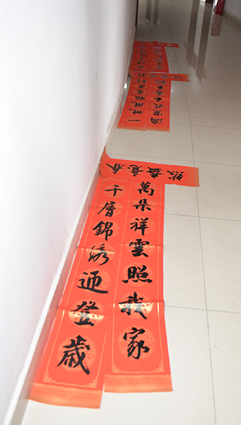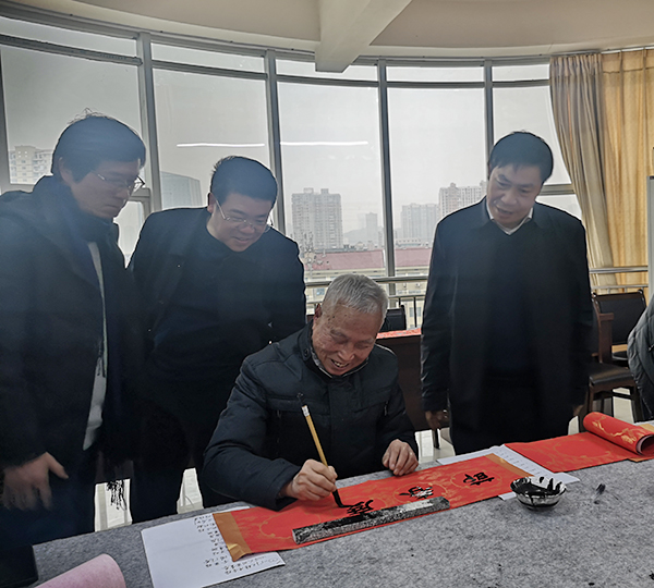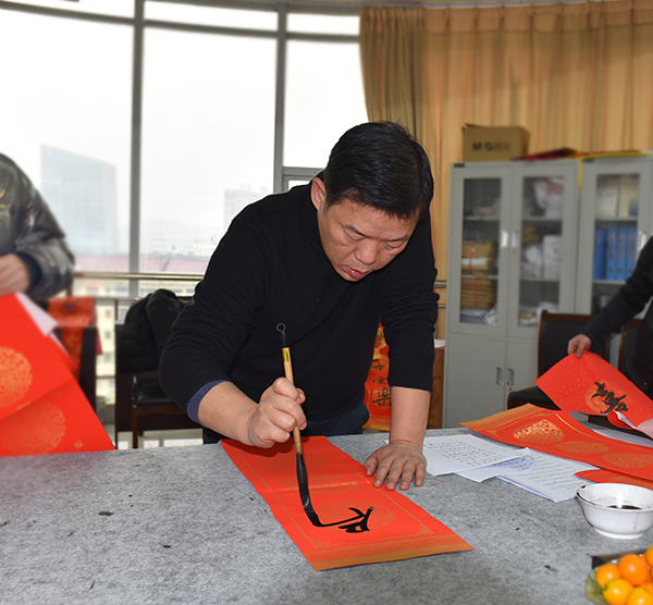 “学校每年都给大家写福字送春联,特别温馨!”1月12日,综合楼七楼会议室喜气盈盈,许多老师在这里拿到了在工会预约的春联、福字,感觉十分满足。随着春节的临近,为增添广大教职工红红火火过新春的祥和喜庆气氛,校工会开展为教职工“写福字送春联”活动。各分工会登记统计教职工们书写春联和福字的需求,由校书画协会邀请娄底书画名家现场集中书写。此次活动持续三天,共为400余名教职工撰写了500幅春联、1500个福字,为教职工们送上了新春的祝福,让大家感受了书法艺术的魅力。