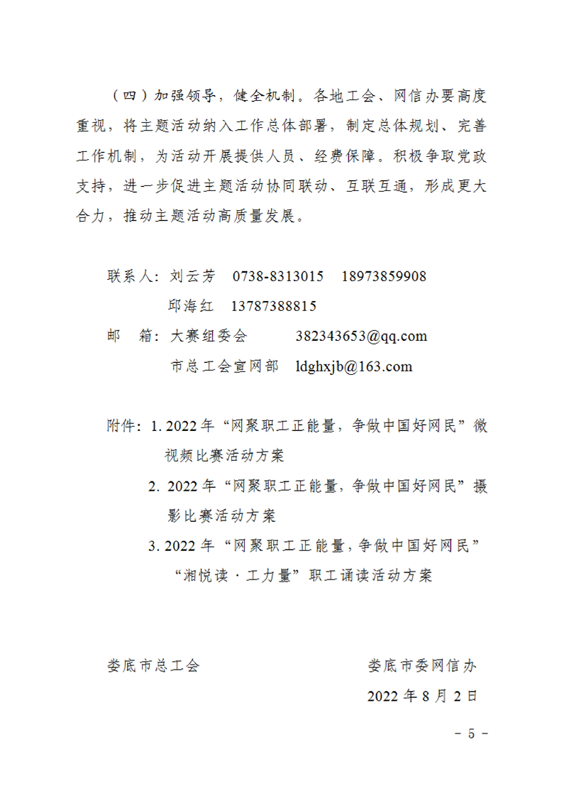 关于开展娄底市“网聚职工正能量 争做中国好网民”主题活动的通知