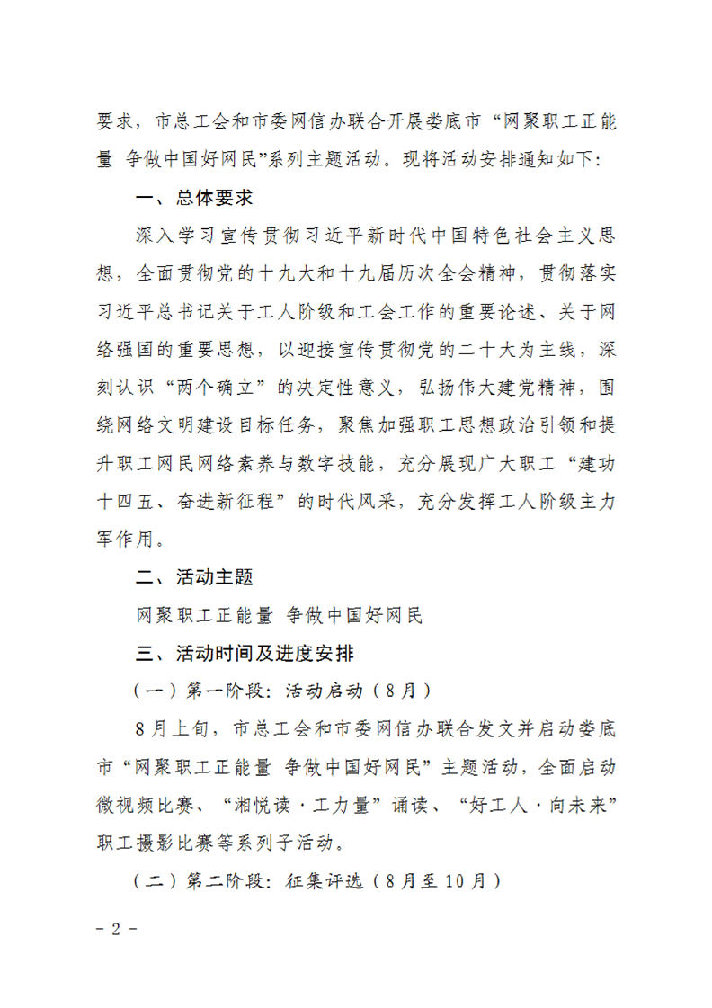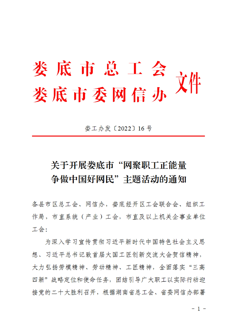 关于开展娄底市“网聚职工正能量 争做中国好网民”主题活动的通知