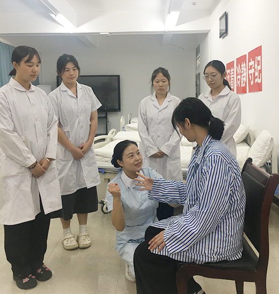 为了更加准确的把握大赛的评分点和标准,祝青将自己定位为一名选手,严格要求自己按照比赛的评分标准来完成技能操作。她说:“只有自己按照评分标准去实践,才能体会学生完成操作时的难点,这样才能指导学生改进操作方法”。在指导心肺复苏操作时,学生常常不能准确的把握按压深度和吹气量,她就在模型上练习,一天练下来手腕都肿了,提不起重物。她将自己练习时的经验与感受分享给学生。功夫不负有心人,2018年,她指导学生参加湖南省职业院校技能竞赛(中职组),在省赛中成功突围晋级国赛,这是娄底市护理专业学生首次入围全国护理技能竞赛并获奖。