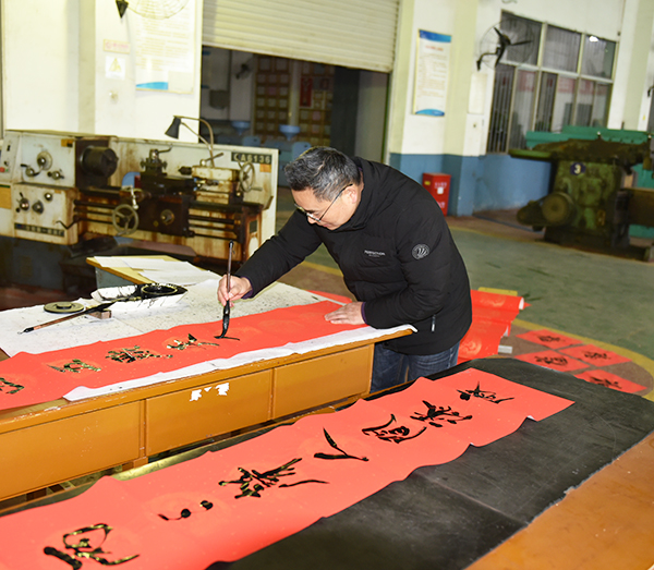 活动分别在综合楼7楼、9楼,机电学院实训工厂分三个场地同步进行。5位老师或挥毫泼墨,或龙飞凤舞、潇洒飘逸,或刚劲峻拔,方润整齐,将美好的祝愿化作一幅幅平安和谐、吉祥如意的春联和“福”字,为即将到来的春节增添了浓浓的喜庆氛围。