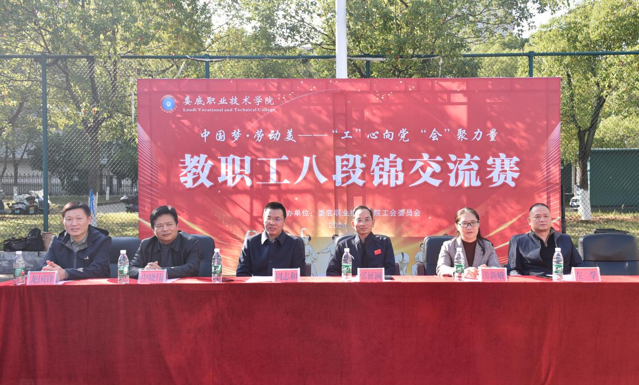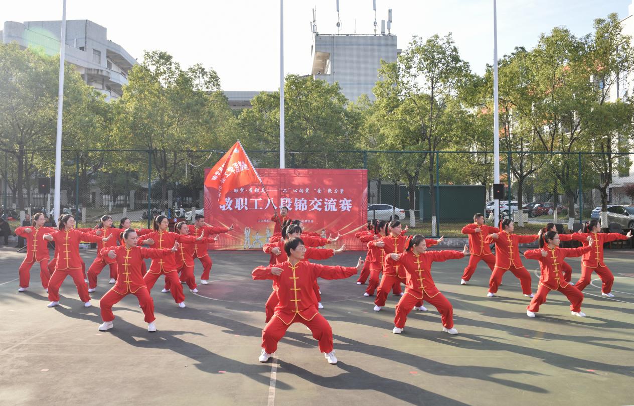 为积极响应全民健身号召,11月28日,由校工会主办的“中国梦·劳动美”教职工八段锦交流赛在综合校区举行。在家的全体校领导出席活动。