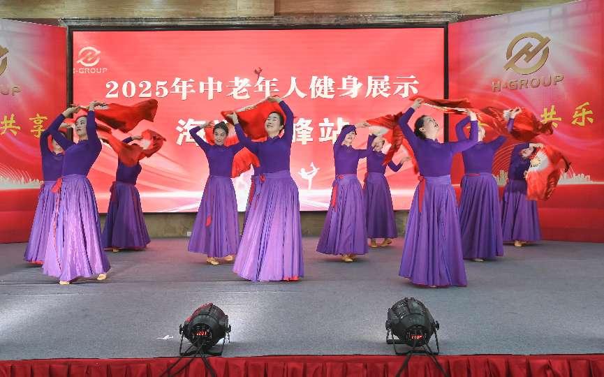 21日晚上,三支队伍参加了健身展示海选,开展了体育文化艺术交流,几十只队伍分别表演了广场舞、太极拳、旗袍秀、柔力球、健身球操等文体健身节目,我校展示了两个节目,舞蹈《唱支山歌给党听》演员们舞姿优美、婀娜秀丽,吸引了现场观众的目光,引来热烈的掌声。