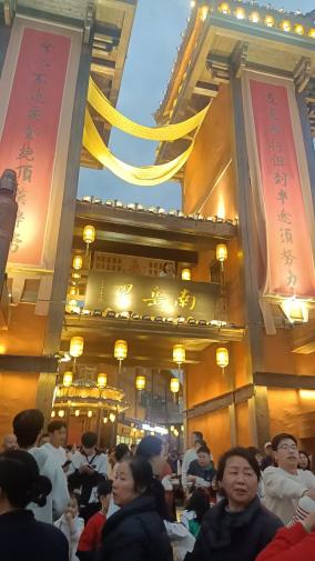 之后游览南岳里,这是一个聚焦南岳特色“庙会民俗”主题的美食综合体,集特色小吃、高端餐饮、精品民宿、休闲娱乐、文化体验和水上游览于一体,融合了“旅游+休闲+餐饮+文创+演艺”等多样元素的体验地。人们欣赏南岳里丰富多彩的夜景,如灯光秀、烟花秀、演艺表演、特色市集等,感受全天候、多维度的沉浸式旅游体验。