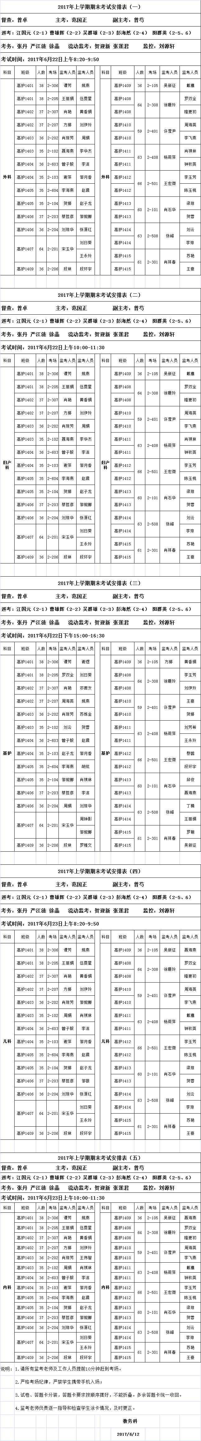 2017年上学期期末考试安排表1