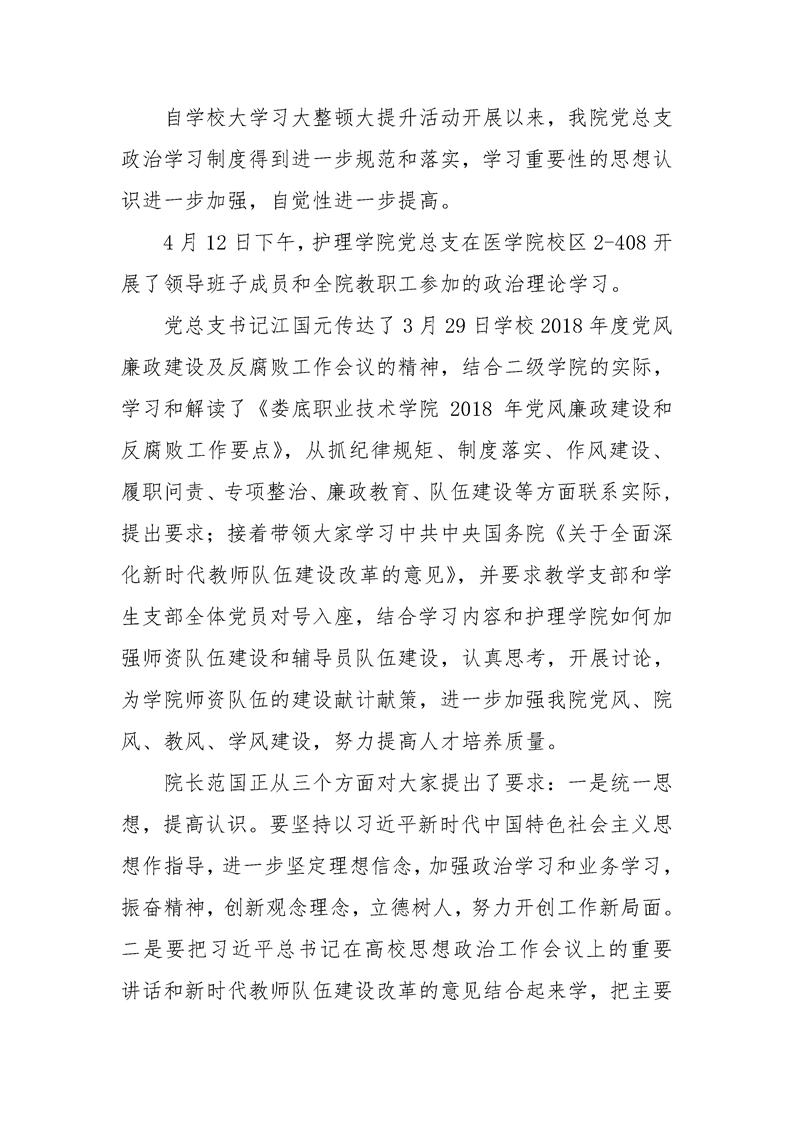 护理学院党总支组织专题政治学习