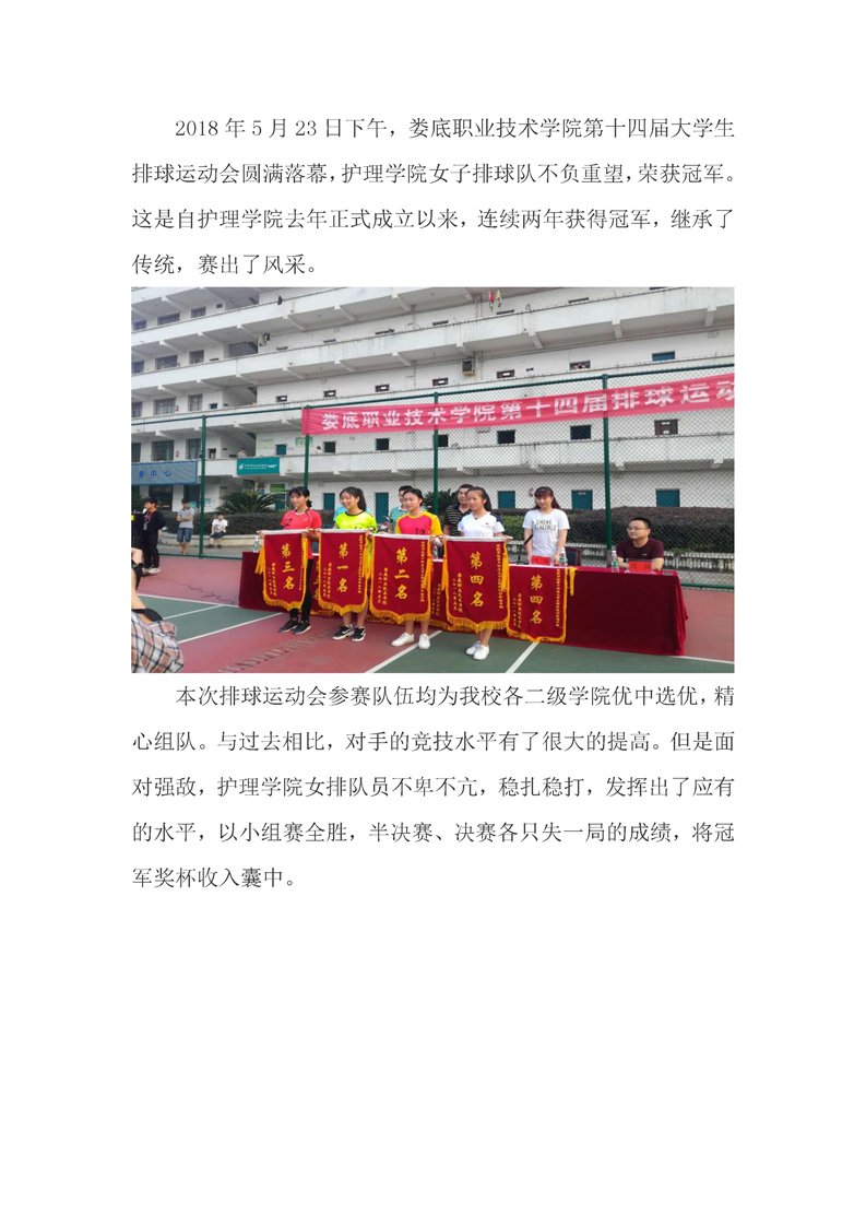 护理学院女子排球队荣获娄底职业技术学院第十四届大学生排球运动会冠军