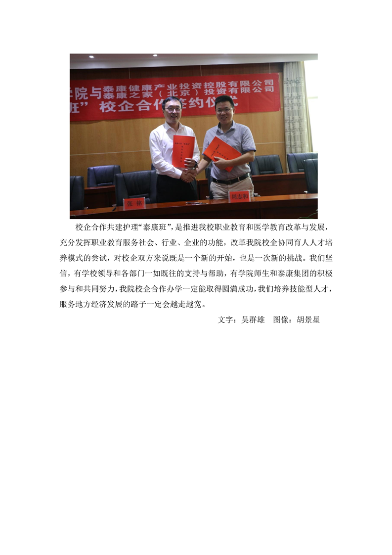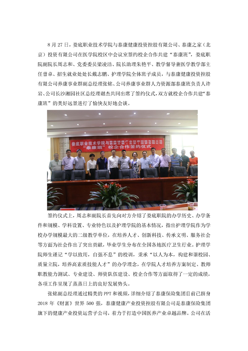 校企合作共建“泰康班”,推进改革我院护理人才培养模式