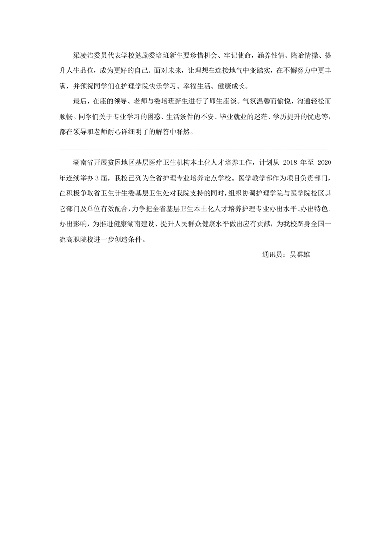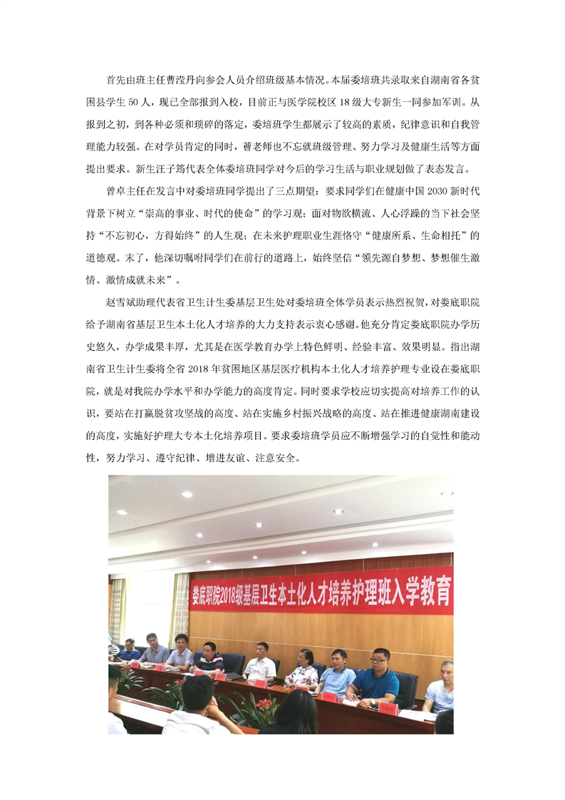 护理学院2018级基层卫生本土化人才培养护理委培班举行入学教育