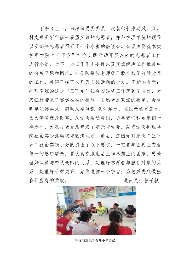 2018年护理学院暑期“三下乡”社会实践 调研第六日