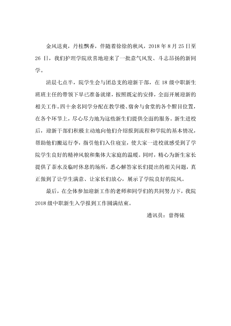 护理学院喜迎2018级中职新生