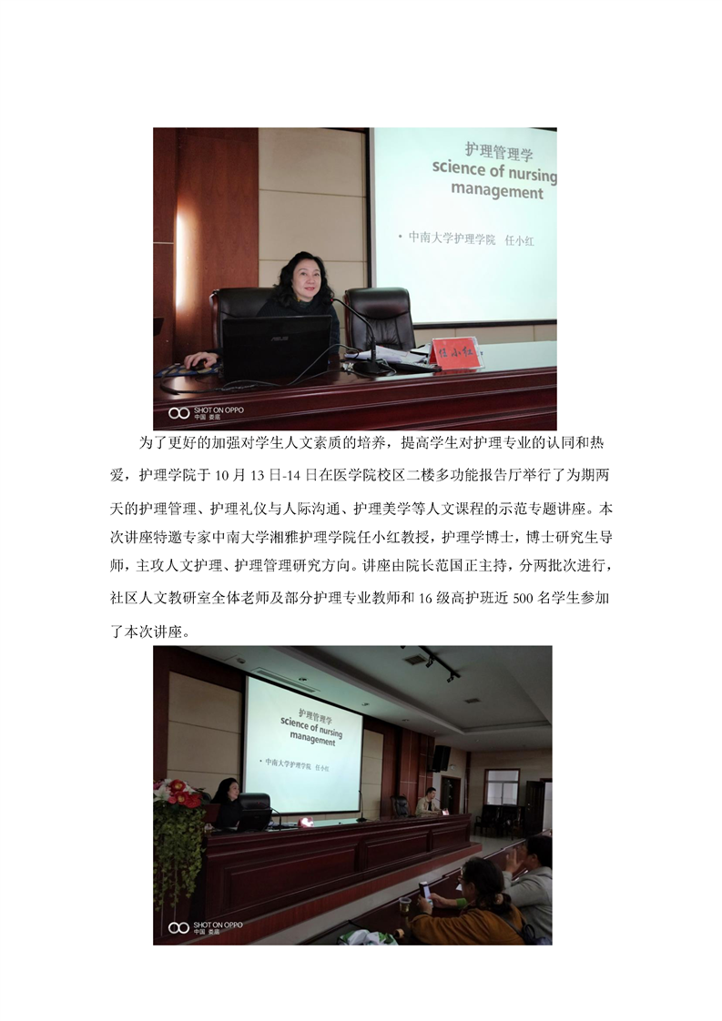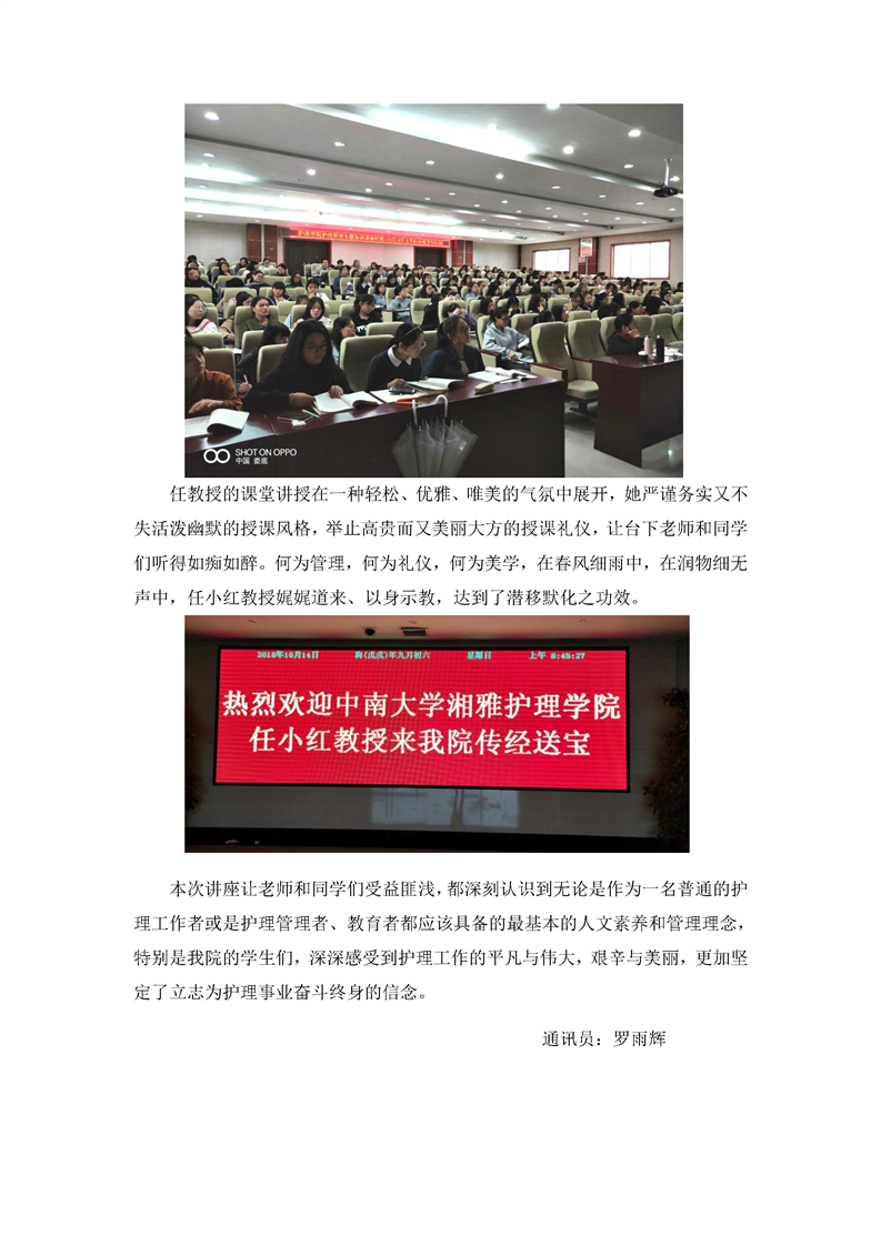 护理学院特邀中南大学护理学院任小红教授来院讲学