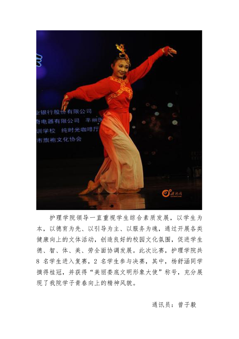 护理学子杨舒涵荣获2018年世界模特大赛湖南湘中赛区冠军