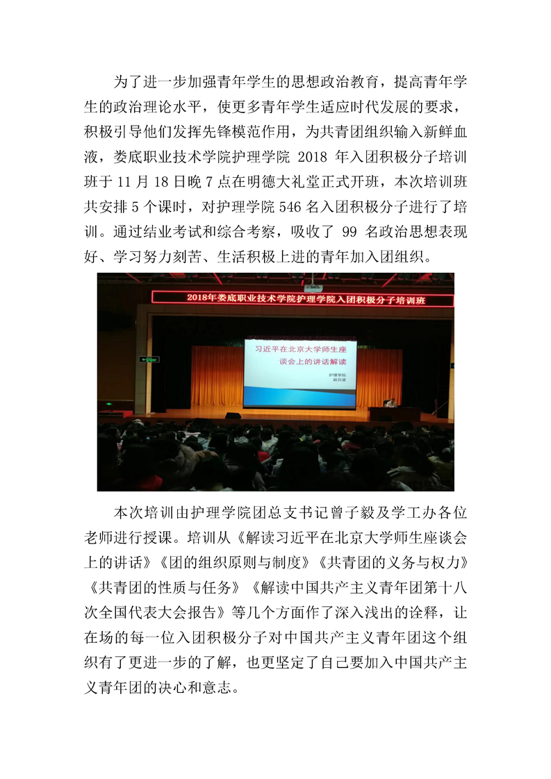 护理学院举办2018年入团积极分子培训班