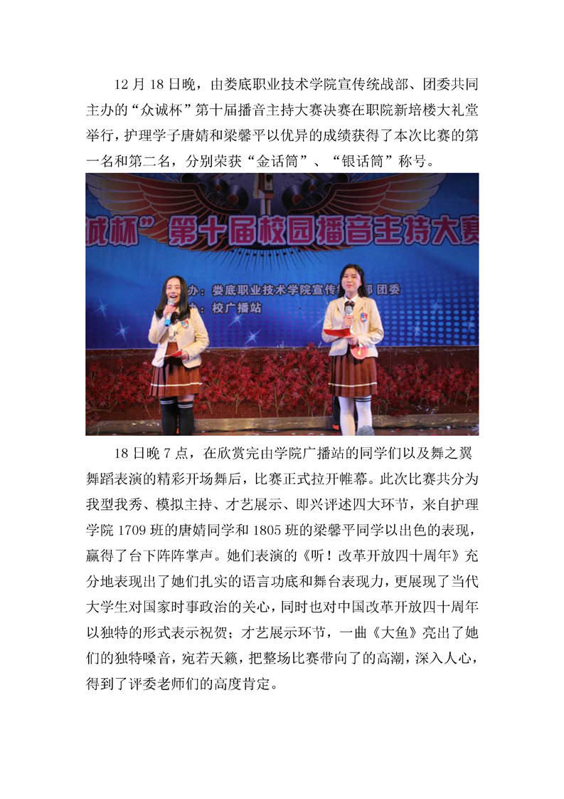 护理学院学子囊括娄底职院播音主持大赛 “金话筒”、“银话筒”
