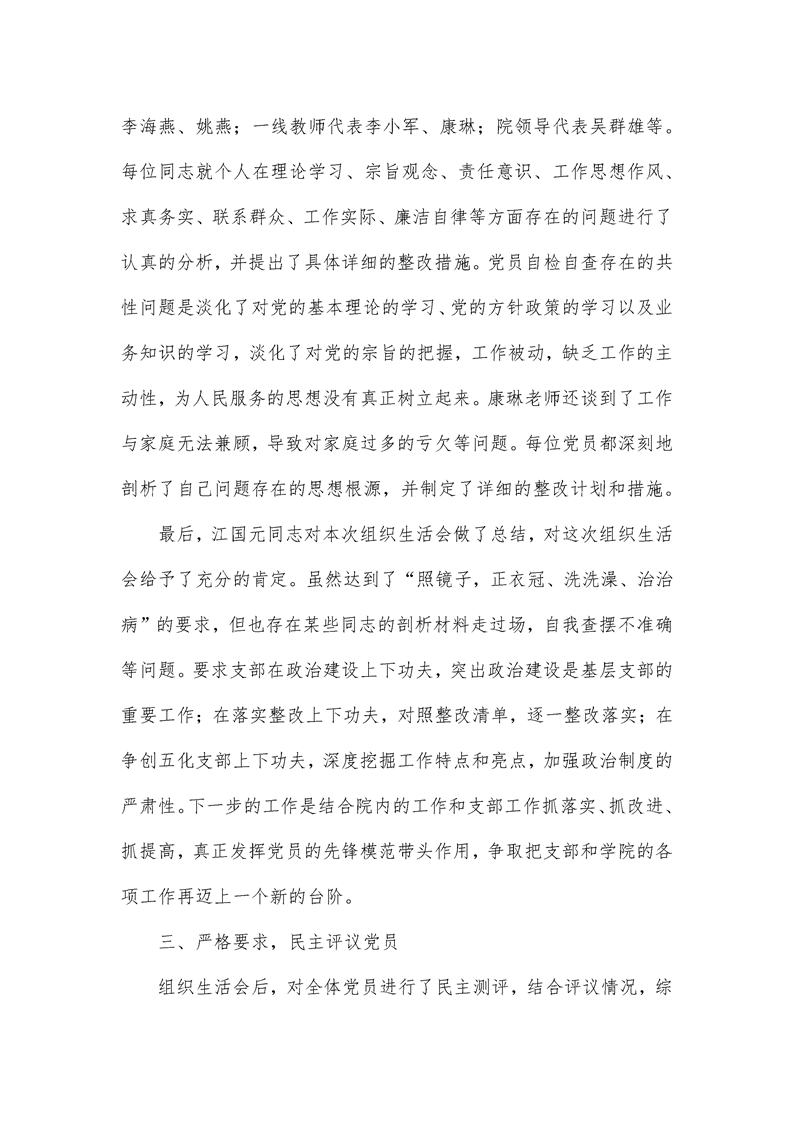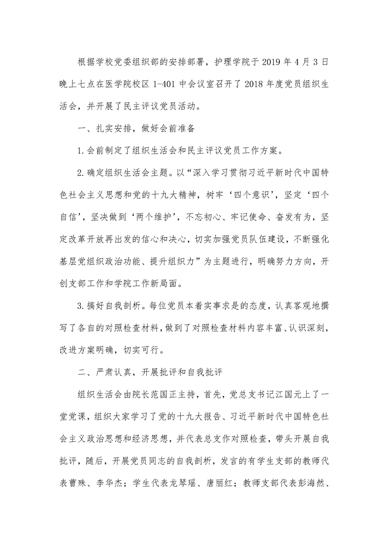 娄底职院护理学院召开2018年度党员组织生活会
