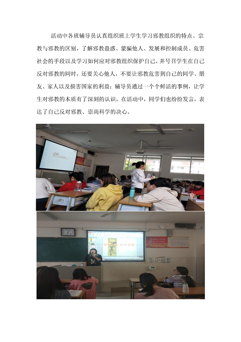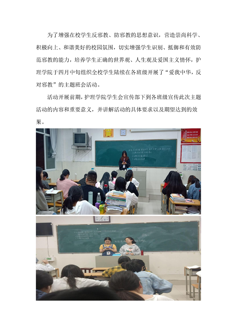 护理学院开展“爱我中华,反对邪教”主题班会活动