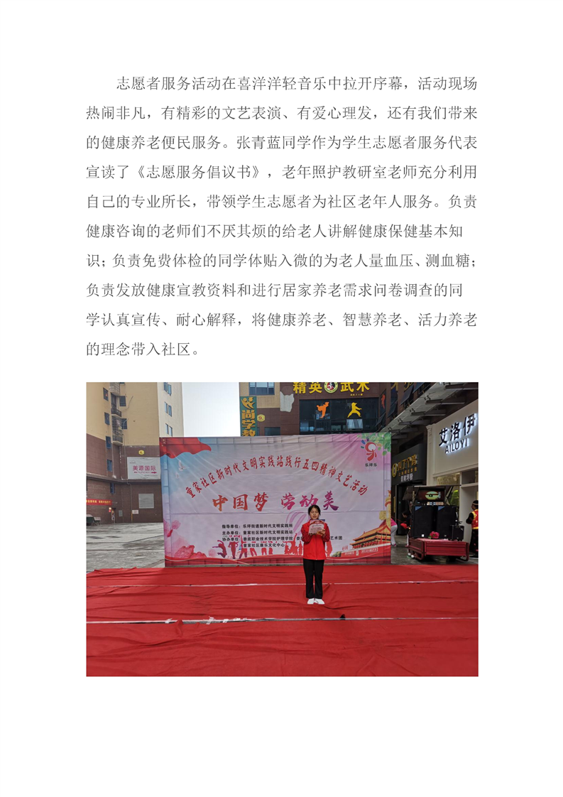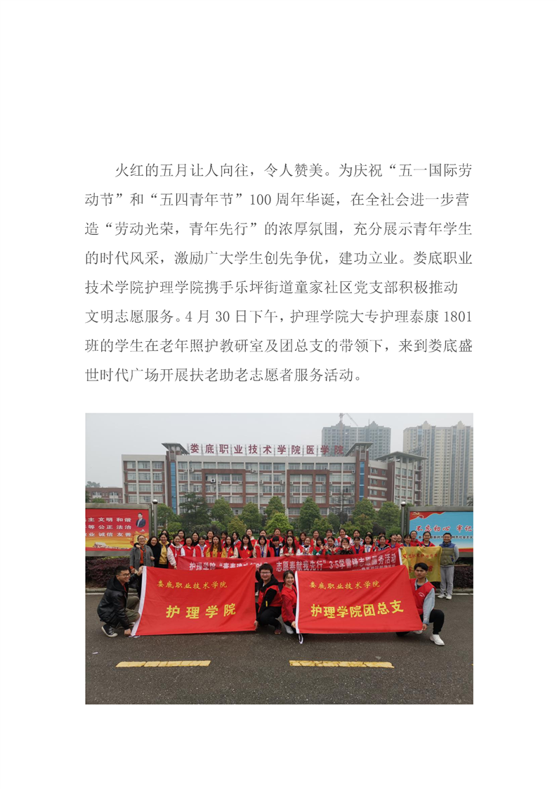 承载使命致青春 扶老助老进社区--老年照护教研室携手护理学院团总支及大专护理泰康1801班进行志愿服务活动
