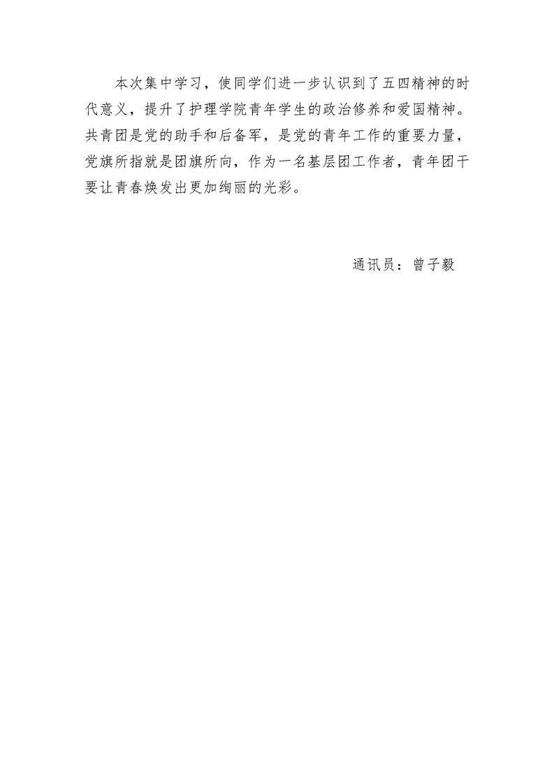 护理学院全体团干集中学习习近平在纪念五四运动100周年大会上的重要讲话