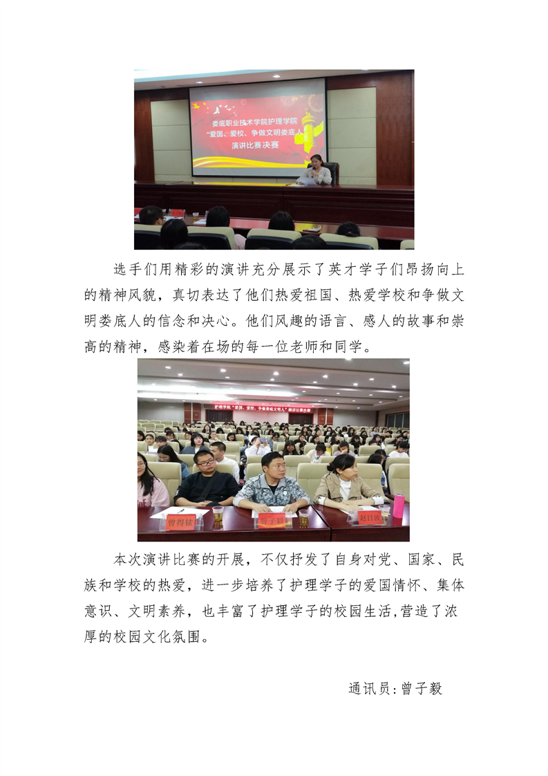 娄底职业技术学院护理学院 “爱国、爱校、争做文明娄底人”演讲 比赛决赛圆满结束