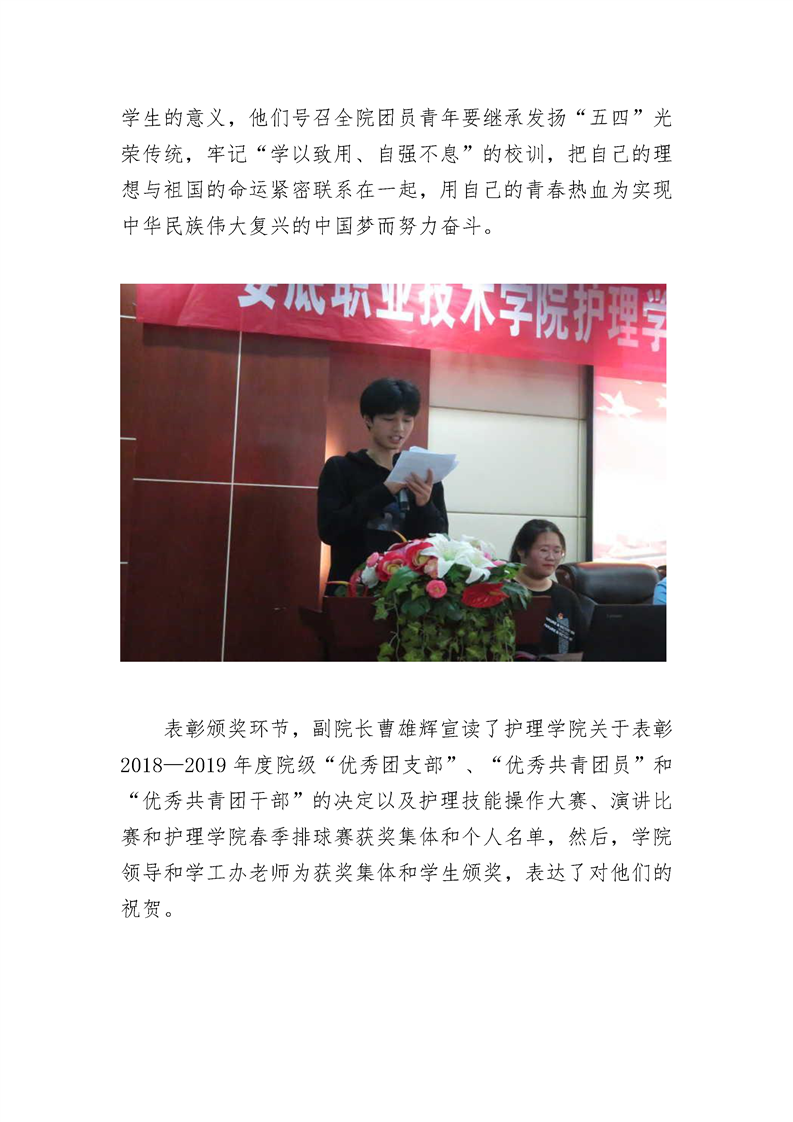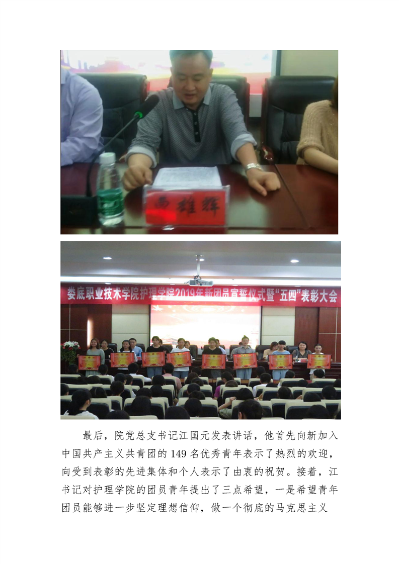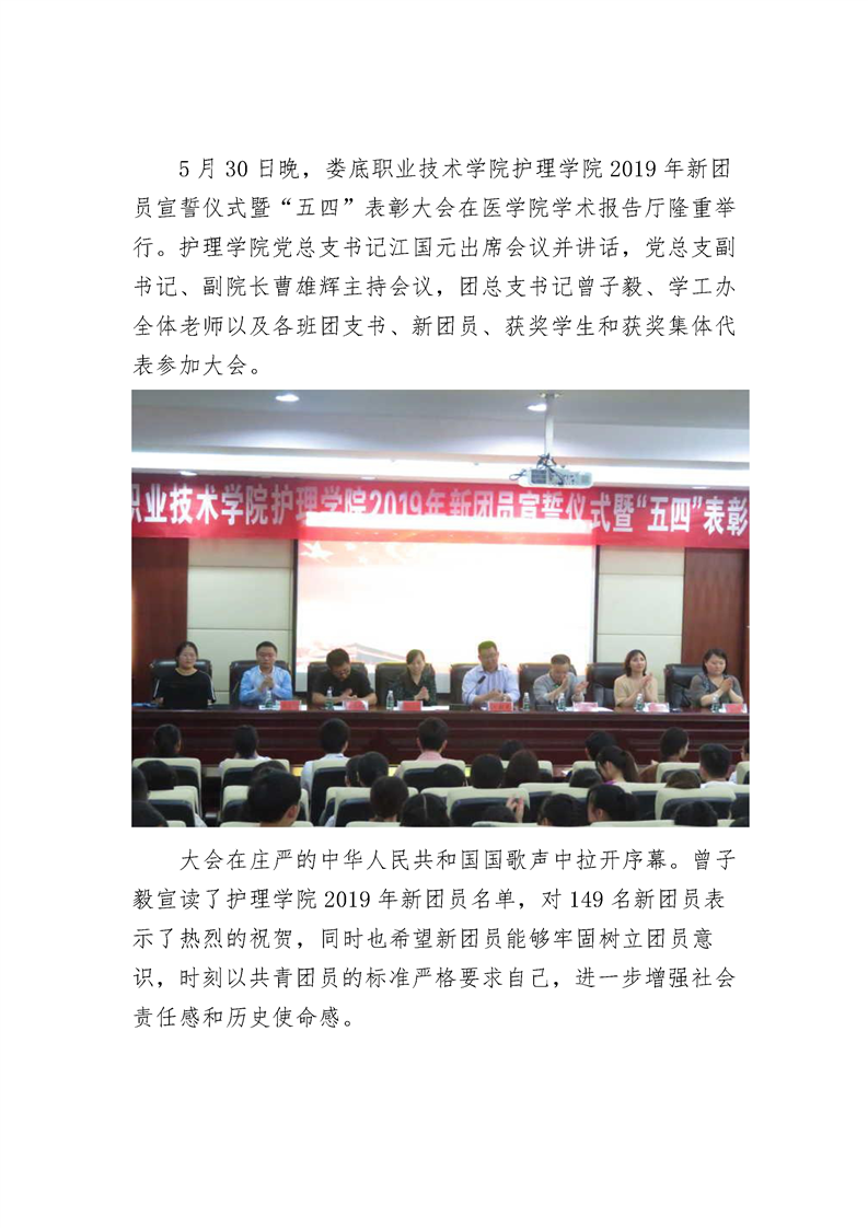 娄底职院护理学院举行2019年新团员宣誓仪式暨“五四”表彰大会