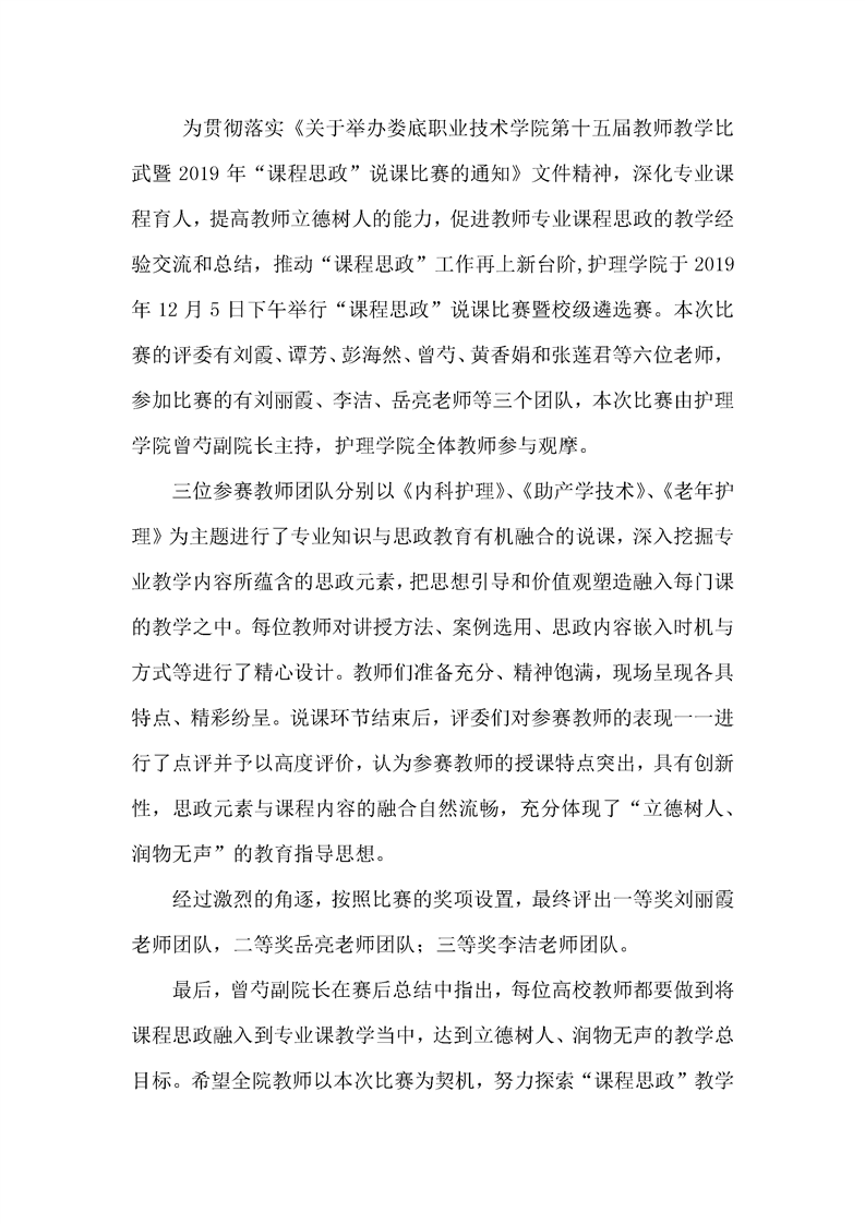将“课程思政”融入医学专业课堂——护理学院举办教师“课程思政”说课比赛