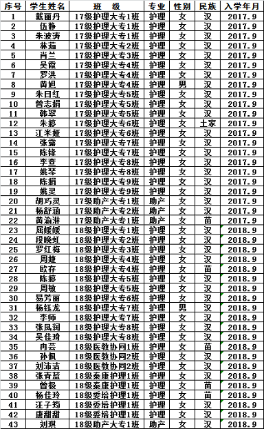 根据学校2018-2019学年国家励志奖学金的有关评选要求,经校、院奖助学金评审工作组审核,护理学院现将名单公示如下,如有异议,请向护理学院党总支反映,联系电话0738-8381099