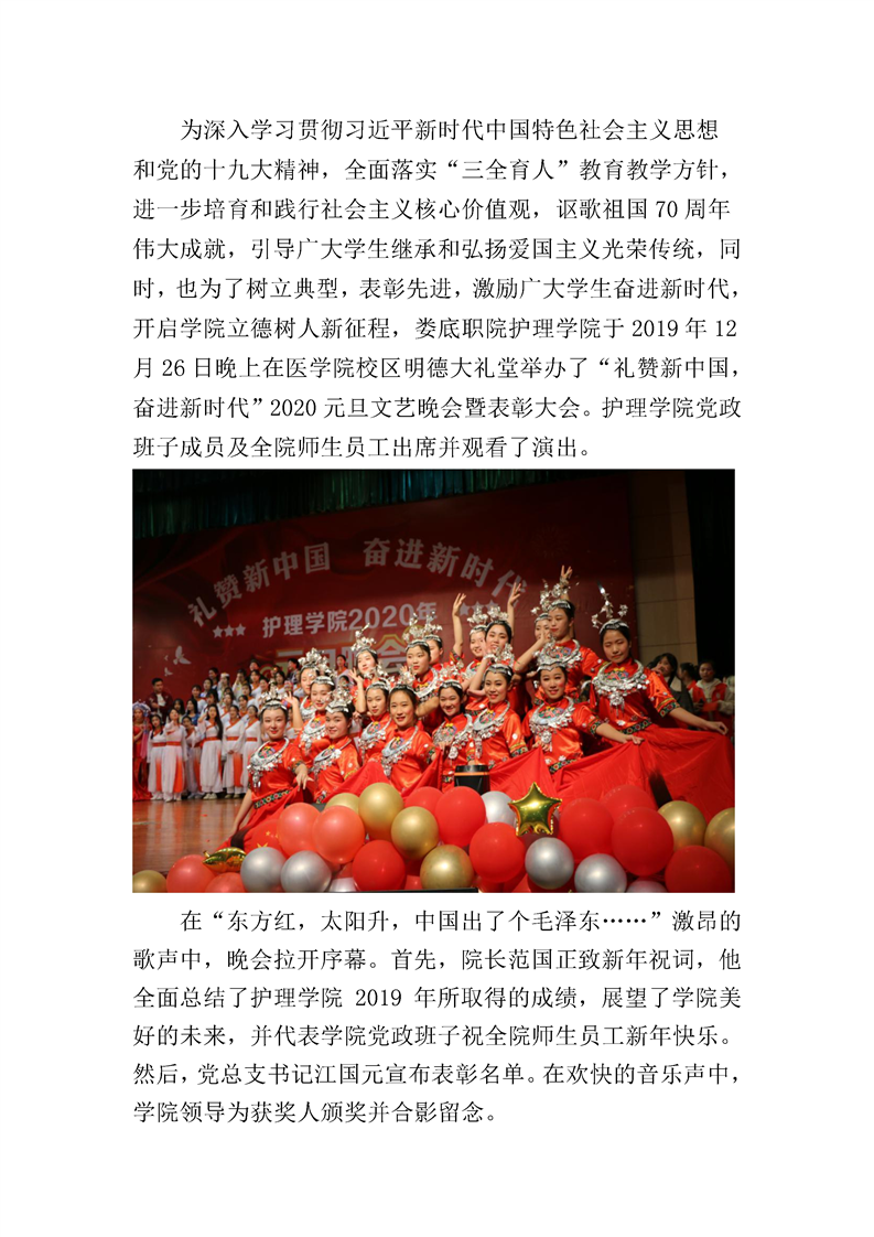 护理学院举行“礼赞新中国,奋进新时代”2020年元旦晚会暨表彰大会