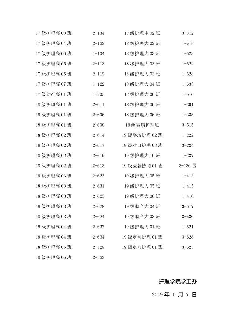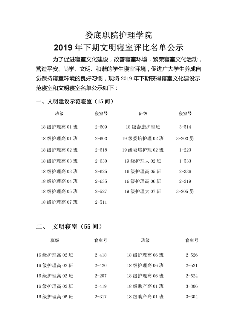 护理学院2019下学期文明寝室评比名单公示