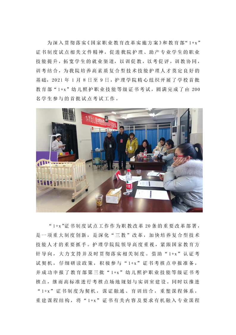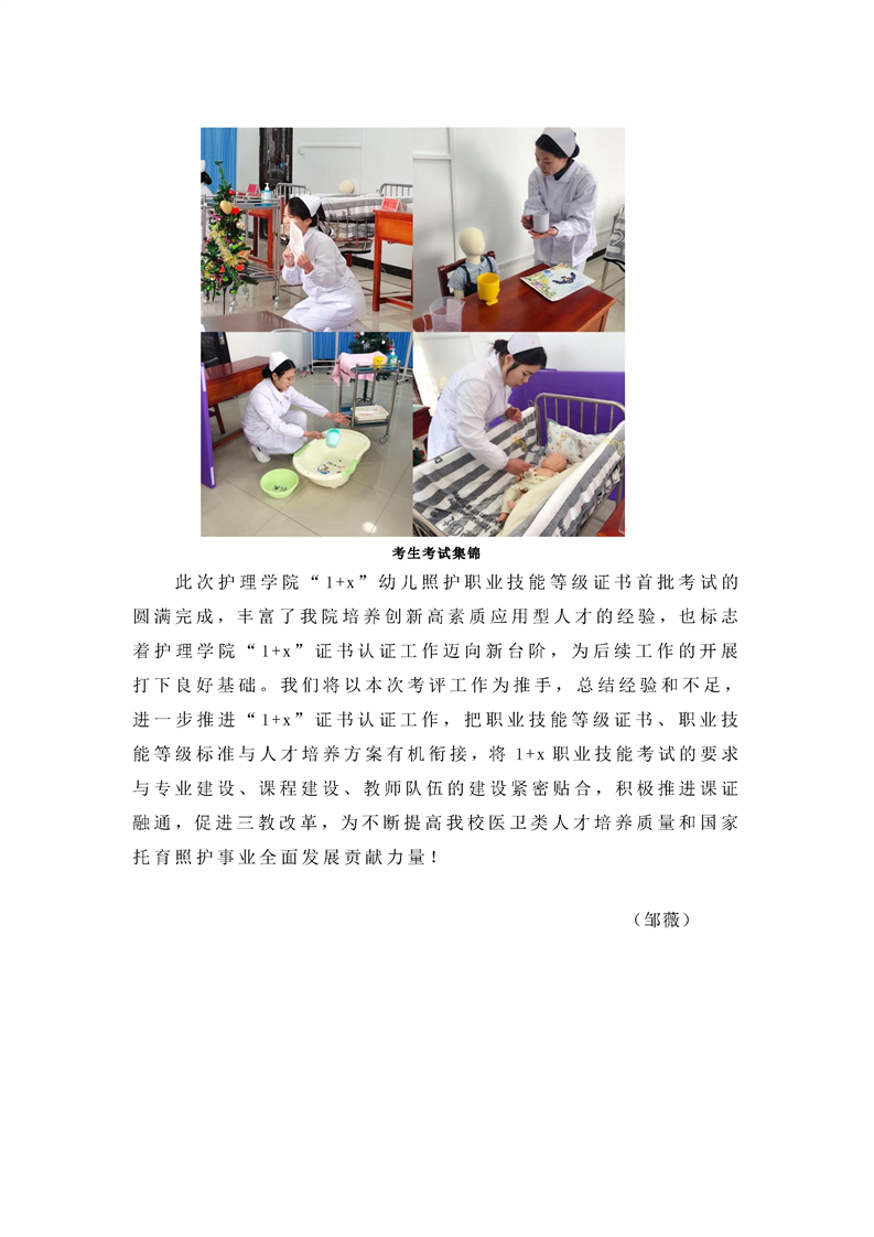 护理学院圆满完成“1+x”幼儿照护职业技能等级证书考试