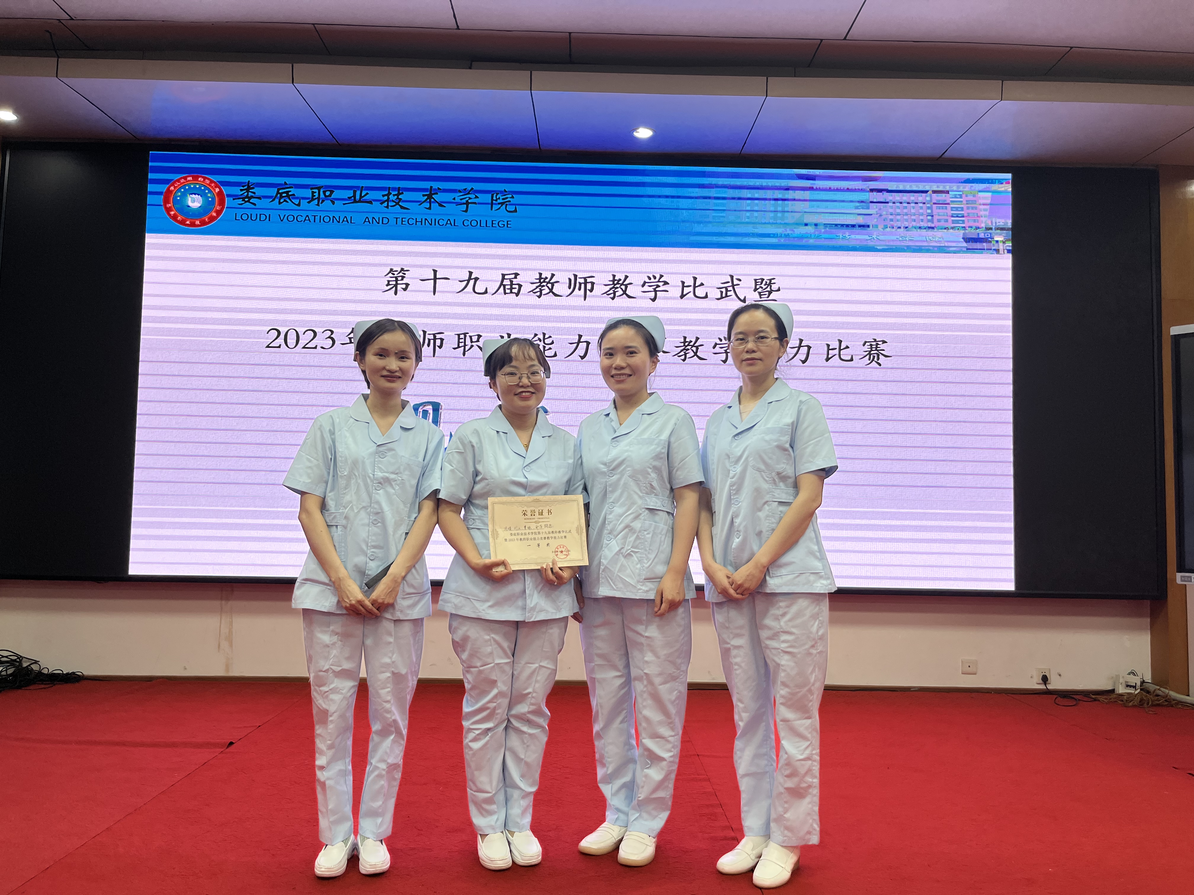 2023年5月5日,作为护理学院参加现场决赛的两支代表队,周娟教师团队在第十九届教师教学比武暨2023年教师职业能力比赛中荣获一等奖;刘媚教师团队荣获二等奖,为我院争得了荣誉,实现了我院在校级教学能力大赛中的再次突破。