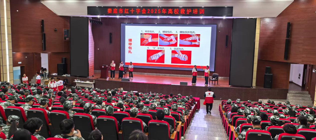 为进一步提升高校学子的应急救护意识与实操能力,筑牢校园安全防线,2025年9月19至20日,娄底职业技术学院医学部携手娄底市红十字会为职院汽车学院、文化传播学院、艺术设计学院、机电工程学院、农林工程学院、电子信息工程学院、商学院、建筑工程学院专业大一新生开展大型创伤救护知识培训活动。本次培训以“普及急救知识,守护生命安全”为核心目的,聚焦日常生活中常见的创伤场景,系统教授包扎止血技能,为校园安全注入“急救力量”。