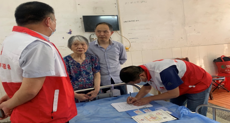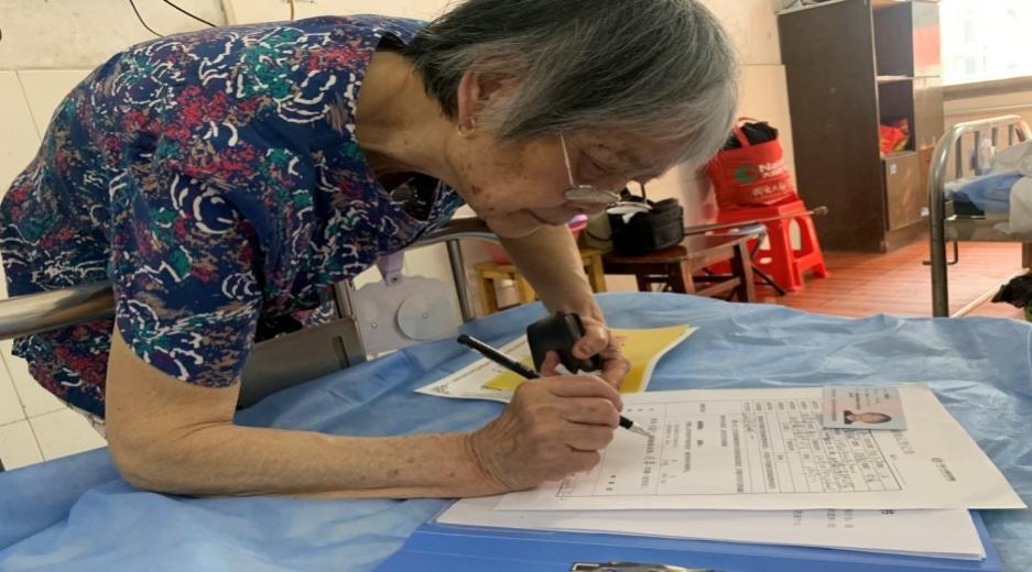 王礼成老人的妻子龙春华老师在人体器官捐献登记表上签字