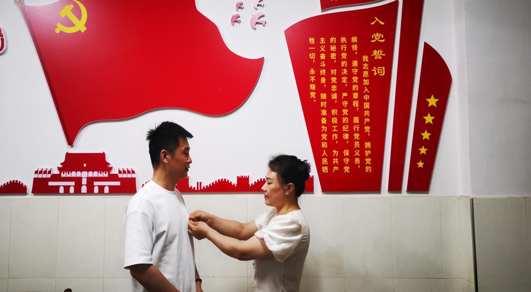 图4 欧阳雪华同志为邵琼同志佩戴党徽