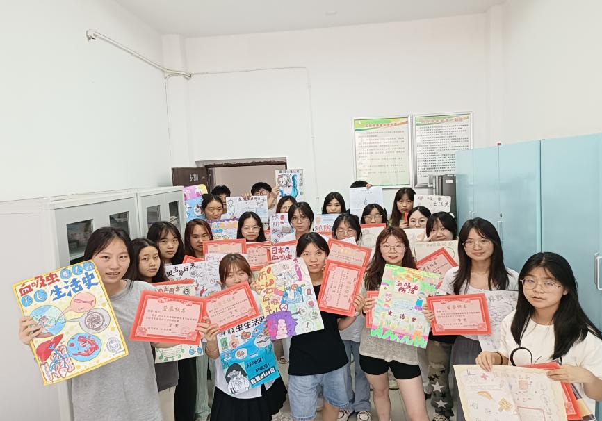为了增强学生的寄生虫病防治意识及提升学生人文和职业素养,增强教师组织沟通能力及提高教学质量,基础医学院于近期举行了寄生虫生活史手绘图比赛,参赛对象是23级医学检验专业和23级临床医学专业共9个班级的学生。