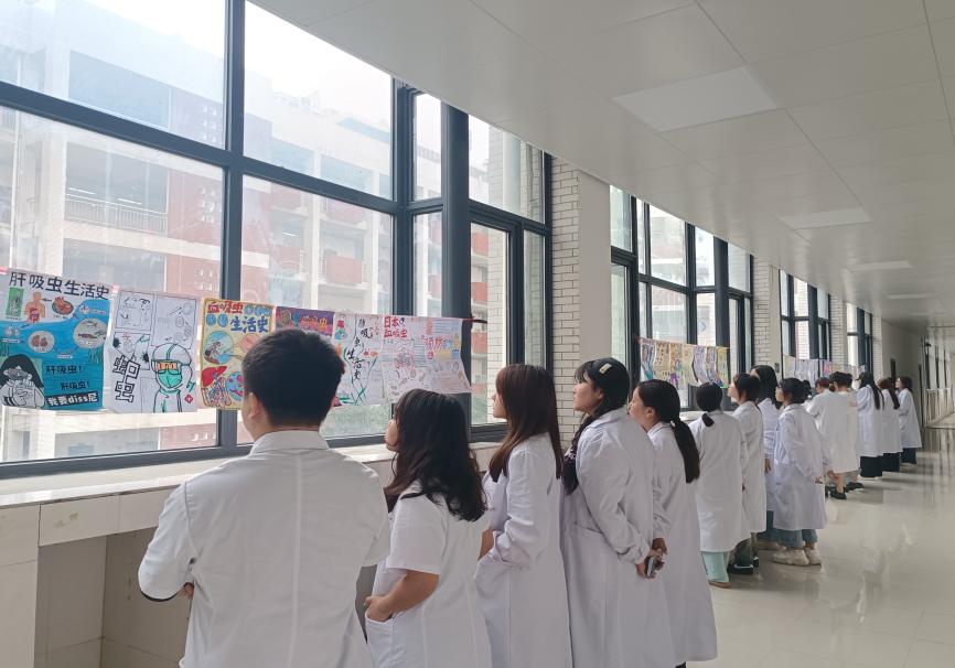 颁奖会上,老师们从选题、创意、构图等方面对本次比赛进行了点评,并鼓励大家创作更多优秀的作品去进行寄生虫病防治科普。一等奖获得者们也分享了自己的创作历程。颁奖会后,病原教研室的老师们将本次获奖作品张贴于病原实训室文化走廊,供学生们学习交流。