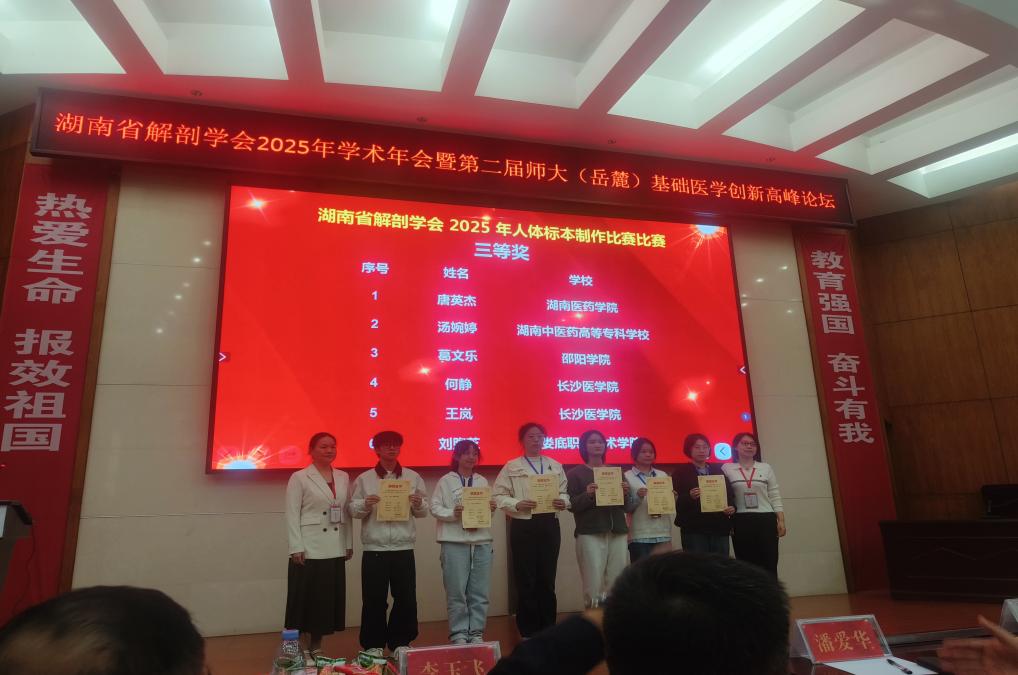 2025年11月14日至17日,由湖南省解剖学会主办、湖南师范大学医学部承办的“湖南省解剖学会第13次会员代表大会暨2025年学术年会暨第二届师大(岳麓)基础医学创新高峰论坛”在长沙隆重举行。