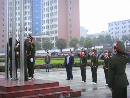 早晨6点40分我系国旗班的同学踏着矫健的步伐,托着鲜艳的五星红旗向升旗台走来。他们充满激情、斗志昂扬,展现着娄职学子良好的精神风貌。当嘹亮的《中华人民共和国国歌》奏响,全体师生立正、瞩目着国旗冉冉上升。随后,09电气大一班乌力吉同学代表我系做国旗下的演讲。 (文/郑霞 图/刘胜)