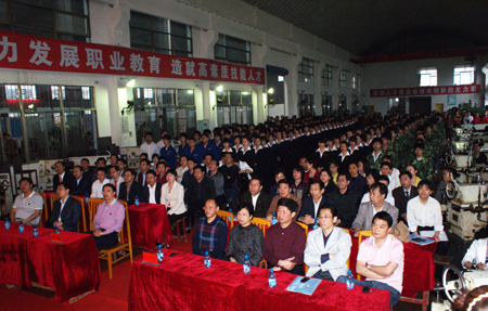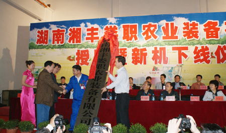 仪式上,娄底市委正厅级干部黄懿斌、市政协副主席刘志伟向李秋溪、杜祥培授予“湖南湘丰娄职农业装备有限公司”牌匾,湖南省农业厅党组成员、总农艺师刘年喜、娄底市副市长刘益丈、湖南商务职院院长张新民为公司首批新机剪彩。12台鲜红的收割机身披红绸从生产车间开出,缓缓开向被气球、拱门、红幅装点得焕然一新的现代制造技术实训中心大门,接受了领导和嘉宾的检阅。