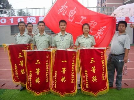 之后,副院长龙伟宣读了军训队列会操优秀班级,我系2010级机电一班荣获一等奖,数控班荣获二等奖,电气自动化、机电五班荣获三等奖。